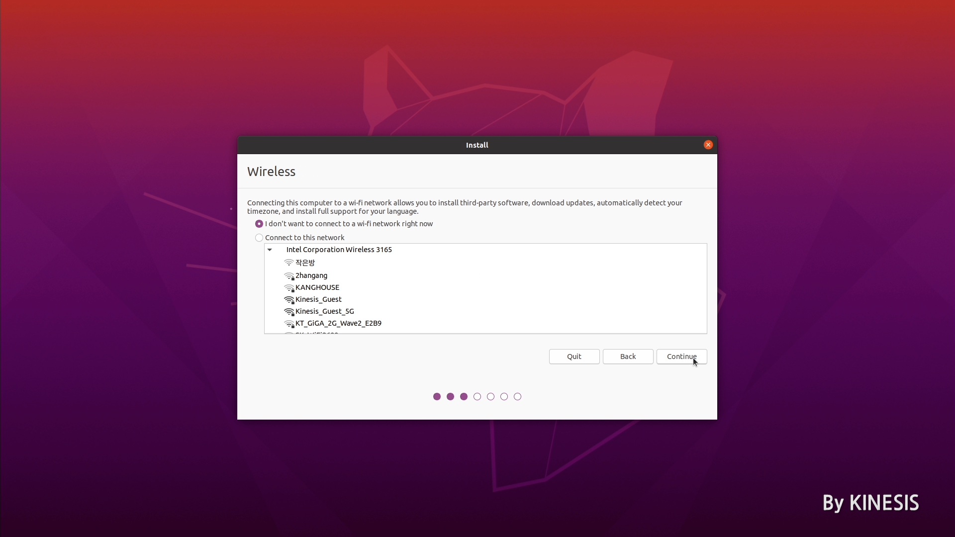 설치할 때는 가급적 Wifi 가 있는 방에서 진행하시길 권장드리는데, 인터넷을 이용해 드라이브 등을 자동으로 설치할 수 있기 때문입니다. 따라서 집에서 이용하고 있는 와이파이를 선택하고, 필요에 따라 와이파이 비밀번호를 입력 후 다음 과정으로 넘어가 줍니다.